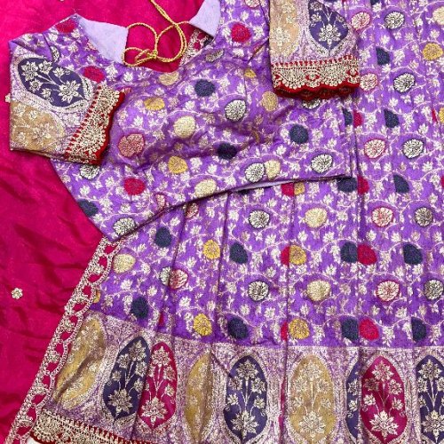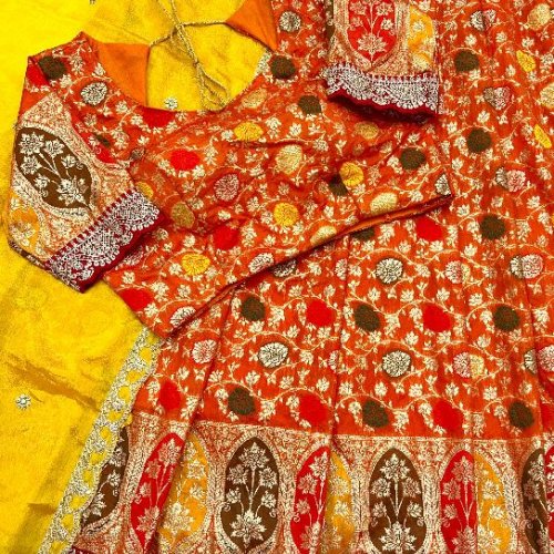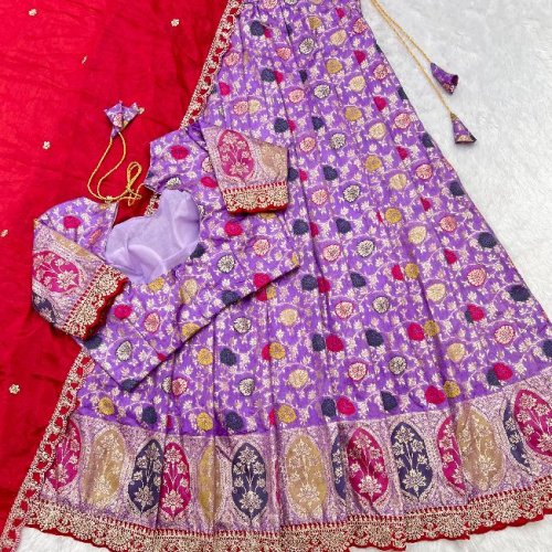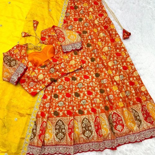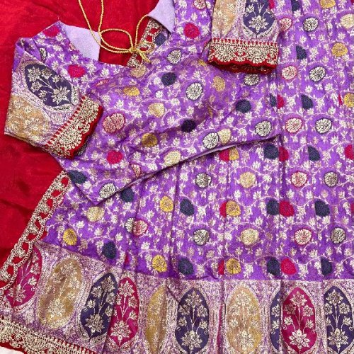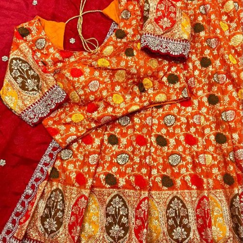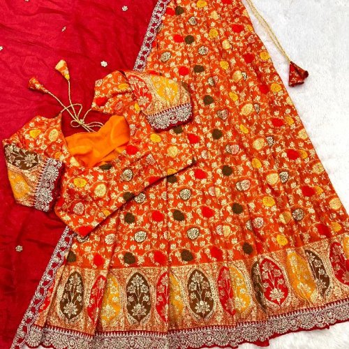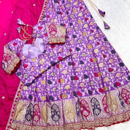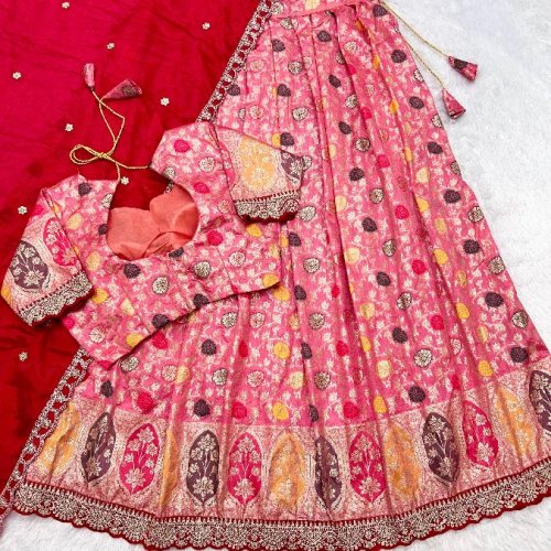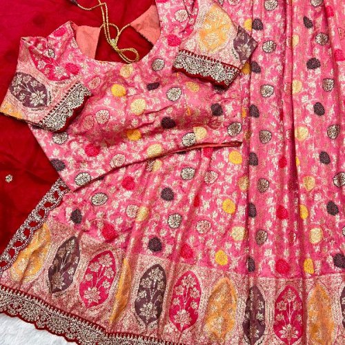 Wedding Wear Silk Cutwork Tissue Lehenga Choli Set