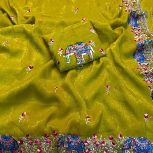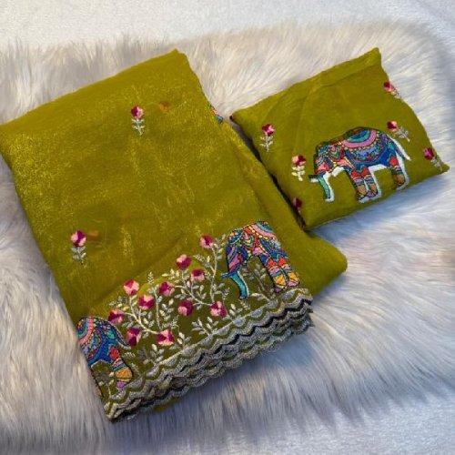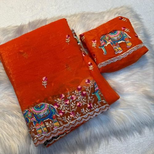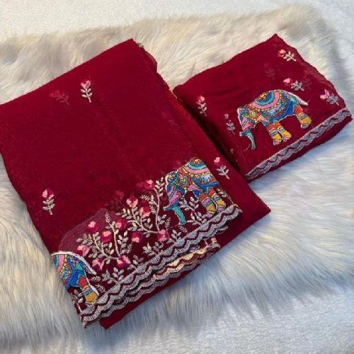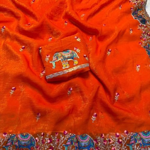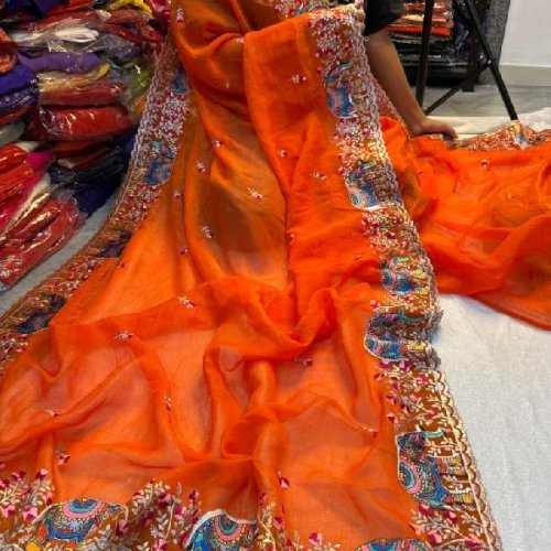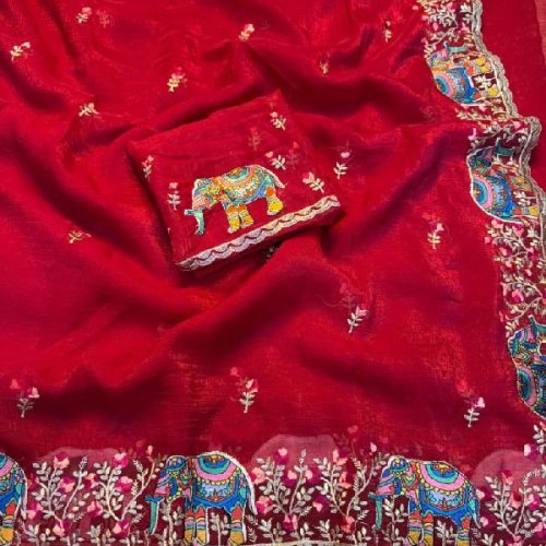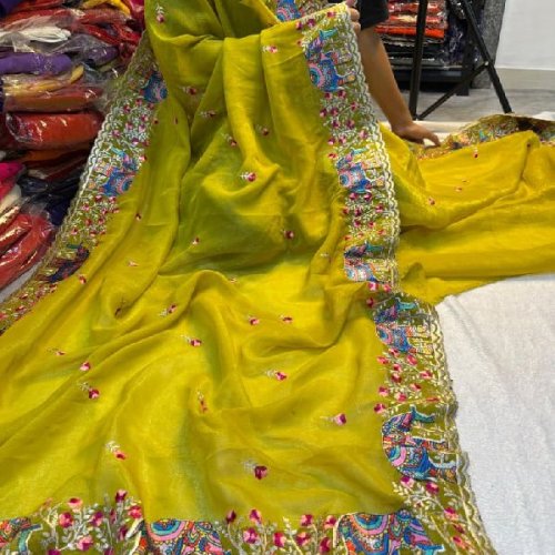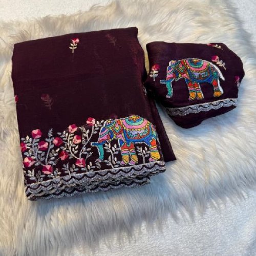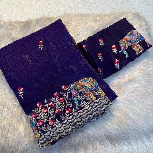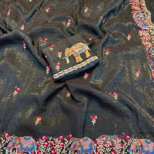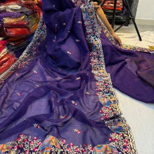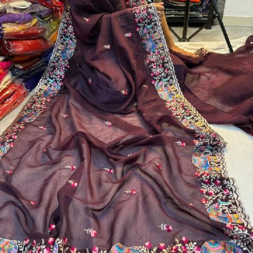 Pure Soft Crunchy Crush Multi Thread Embroidery Saree