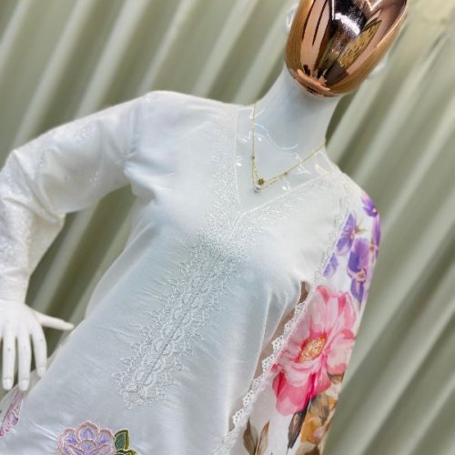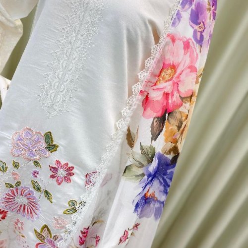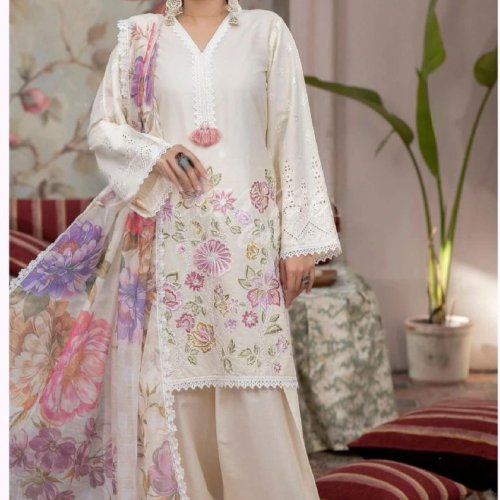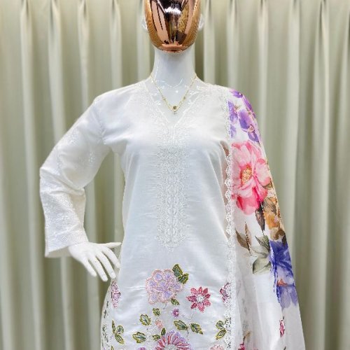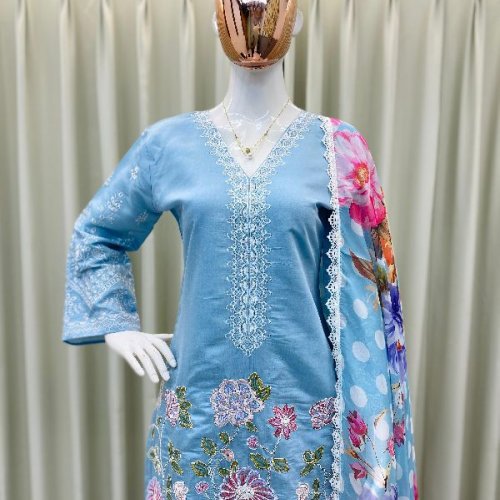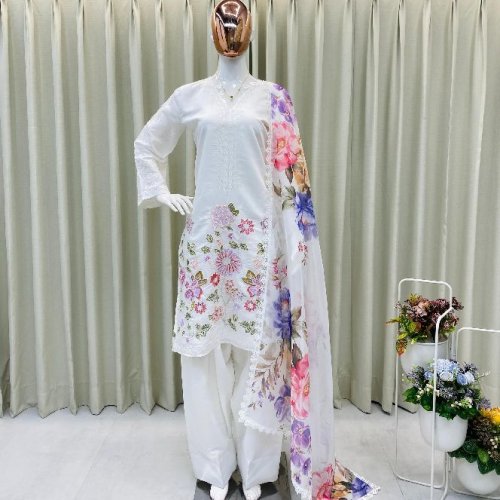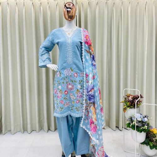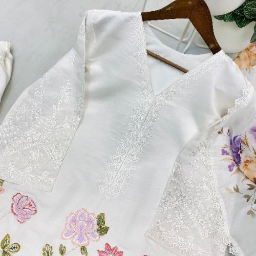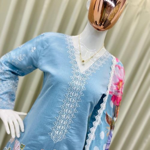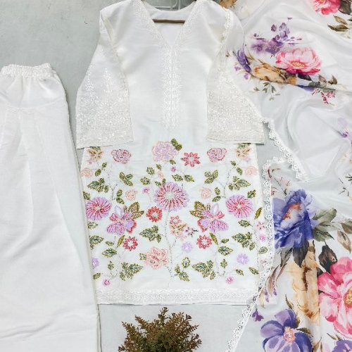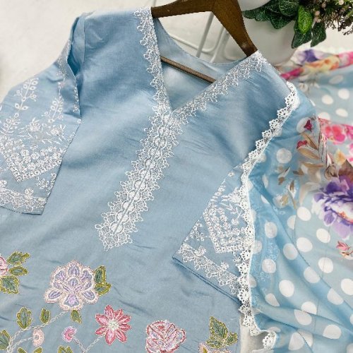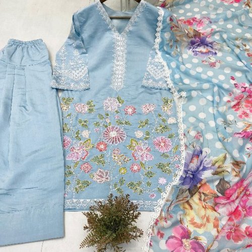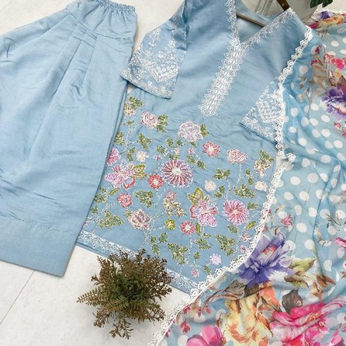 Party Wear Ladies Plum Embroidered French Crepe Farsi Salwar Suit
